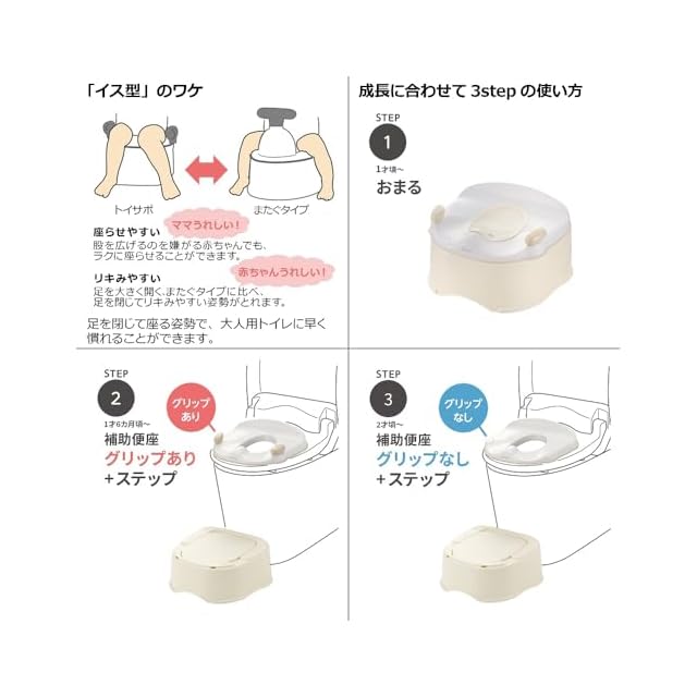 対象年齢(補助便座グリップ付き):1才6カ月頃~4才頃