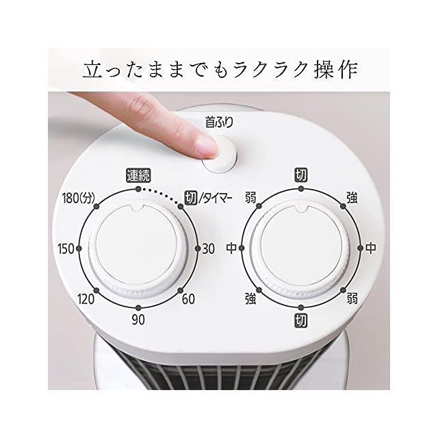 左右自動首振り機能付きで、風量が3段階調整(弱・中・強)でお好みの風量設定が可能です。就寝時も安心、便利な切タイマー付きです(最大3時間)。
