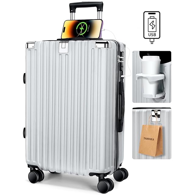 商品名:[Tanoka] スーツケース 機内持込 超軽量 キャリーケース 大型 多機能 軽量 キャリーバッグ 静音 ダブルキャスター 耐衝撃 S/M/Lサイズ 360度回転 TSAローク搭載 ファスナー式 旅行 ビジネス 出張 (シルバー, M(65L/4-7泊))