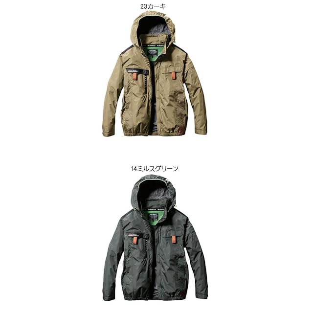 ・カラー :14ミルスグリーン 23カーキ 35ブラック 60アッシュグレー 46ターコイズ ・素材 マイクロソフトシェル、アルミコーティング加工(UVカット・遮熱効果 -9度)、撥水加工 ・混率 : ポリエステル100%