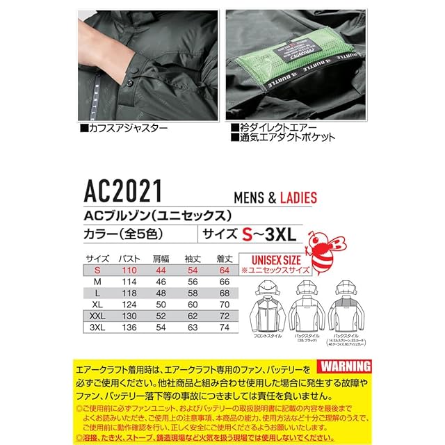商品名:[バートル] エアークラフトフ―ディ 長袖 ブルゾン (ファンなし) AC2021 AIRCRAFT M 35ブラック