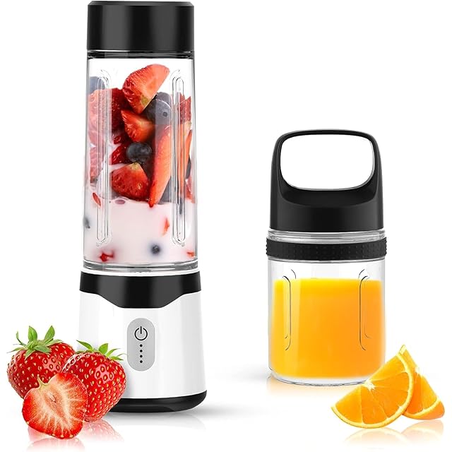 Angashion ジューサー ミキサー 野菜 果物 ジュース 離乳食用 栄養補充 氷 一台多役 2つコップ 350ML/500ML 4000mAh 22000回転バッテリー 持ち運び 磁気誘導型安全機能 USB充電式 USB出力 アウトドア 旅行 出張 オフィス 日本語取扱説明書