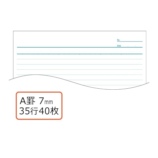 W(mm): 210 H(mm): 297規格:1号(A4)罫内容:A罫7mm 35行枚数:40枚綴じ仕様:無線綴じ紙質:白上質