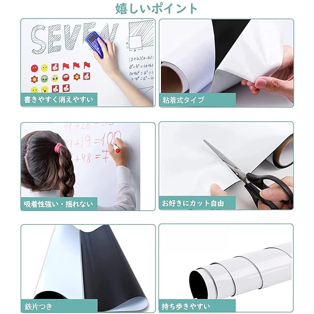 【自由に裁断】サイズは45x90cmで、壁や家具に合わせて必要なサイズや好きな形を切り抜き、汎用性が高いです。平壁、ガラス、キッチン、天井、金属面に直接に貼られて、使いやすく、女性の方やお年寄りでもお気軽に使えます。事務所の予定表、掲示板の知らせ、こどもの落書き、壁に貼り買い物リストなど様々な場所に使えるホワイトボードシートです