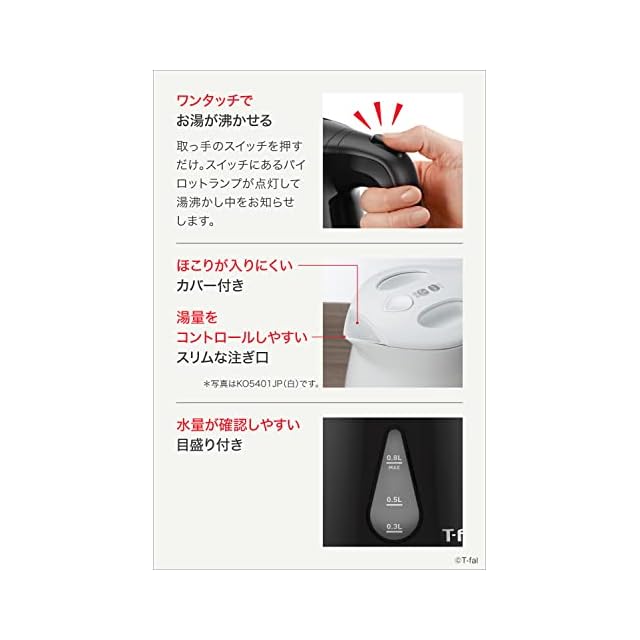 ティファール 電気ケトル 0.8L 転倒お湯もれロック 省スチーム設計 「アプレシア・プラス ロック ブラック」 KO5408JP