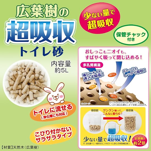 ミニアニマン ウサギ 広葉樹の超吸収トイレ砂 5L