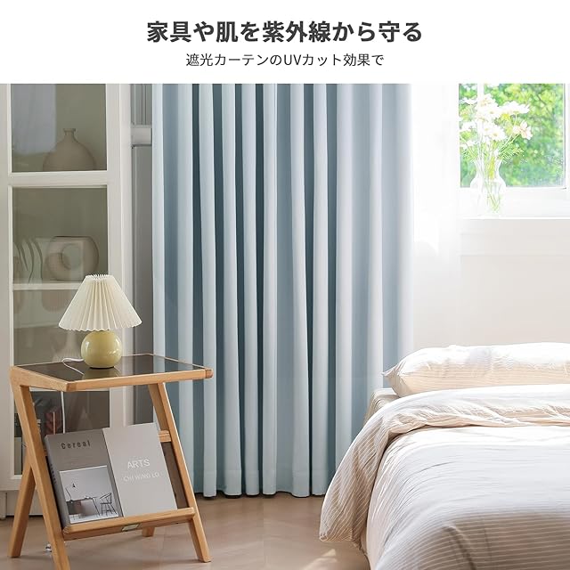 AZRA カーテン 1級遮光カーテン 2枚セット 防音 断熱 防寒 目隠し おしゃれ 既成 無地 寝室 リビング 洗濯可能(ライトブルー,幅100×丈90cm)