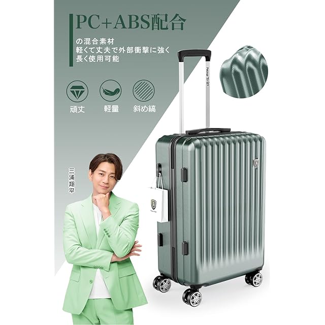 【高品質なボディ&信頼のYKKファスナー】ABS樹脂は軽くて弾力性と割れに強く、PC(ポリカーボネート)樹脂は耐衝撃性・断熱材に優れる、両素材を混合した耐久性が高いハードタイプの高品質ボディを実現しています。また、日本が世界に誇るYKKファスナーをメインファスナーに標準装備。ファスナータイプのスーツケースによくあるファスナーの不具合(ファスナー脱線や開き)を解消し、長期にわたり安定した使用感が可能となりました。