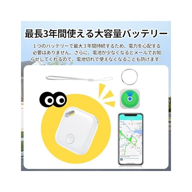 紛失防止タグ トラッカー 小型 GPS 子供 バレない スマートタグ 耐摩耗性 防水性 耐油性 薄い 電池寿命約3年 探し物/紛失防止タグ/スマホが見つかる/置き忘れ防止(高齢者/迷子/犬/猫/スマホ/カバン/キー/財布/荷物/バッグに掛ける)white-001