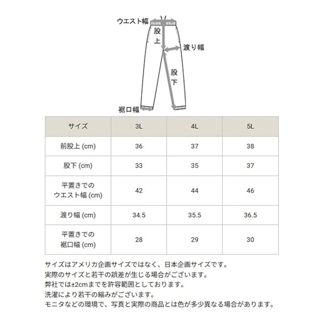 SIZE:3L ウエスト:83cm 股上:36cm わたり幅:34.5cm 股下:33.5cm 裾幅:27.5cm