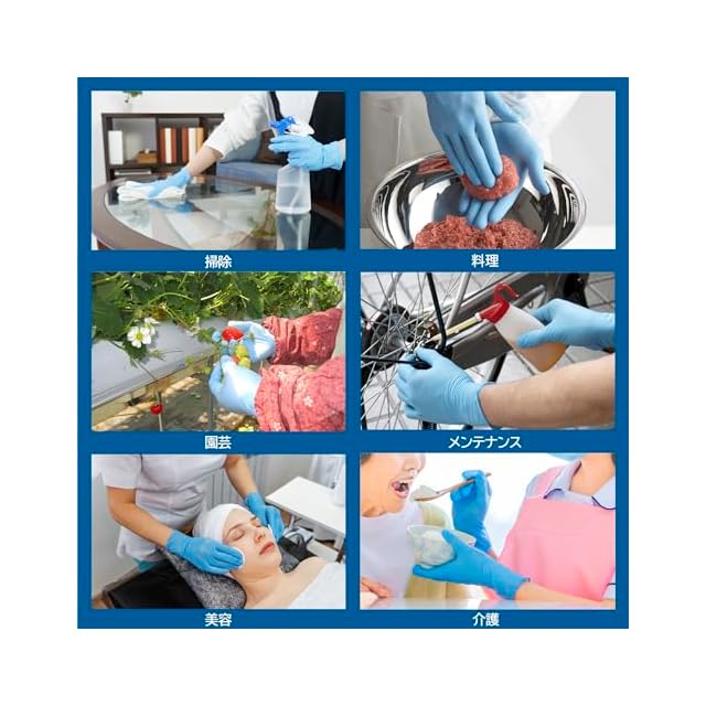 【食品衛生法適合】調理や料理など直接食品に触れる作業にもお使いいただけます。ご家庭でのお掃除や草むしりなどちょっとした作業や、ニトリルゴムは耐油性にも優れるため自転車などのメンテナンスなど様々なシーンでお使いいただけます。