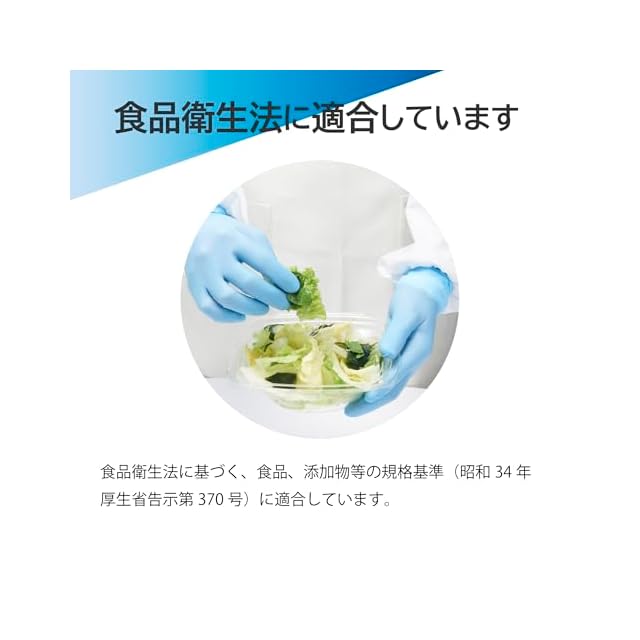 ニトリルゴム製のため油に強く伸縮性もあり、食品衛生法適合で食品加工や調理など食品に直接触れる作業でもお使いいただけます。