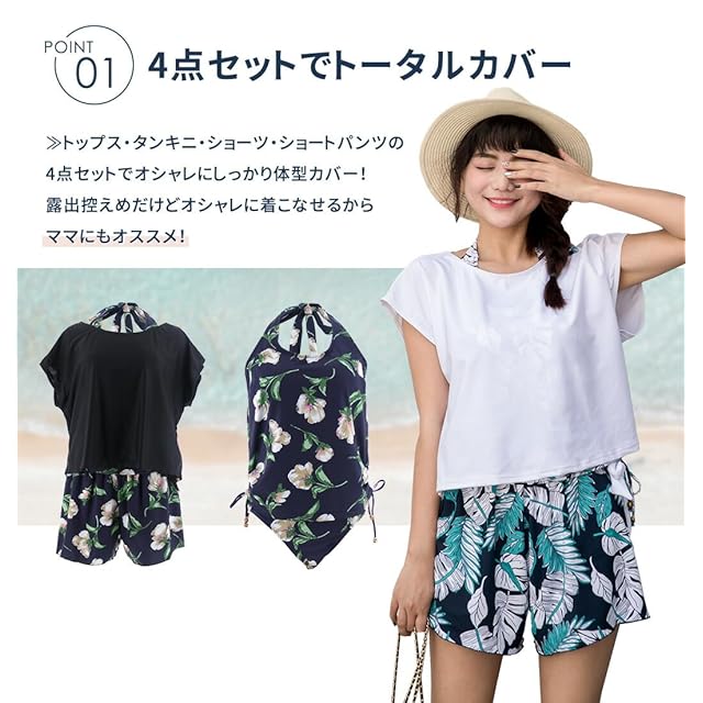 セット内容・4点セット・ビキニ上下(ブラ+パンツ)・タンキニ(タンクトップ+ショートパンツ)