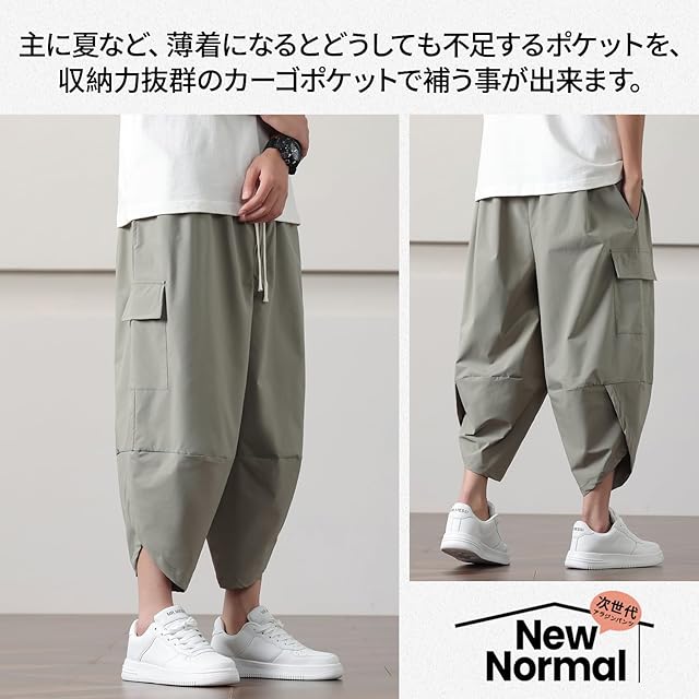 [Fasshonrida] サルエルパンツ メンズ 7分丈 ズボン 夏用 アラジンパンツ 大きいサイズ ゆったり バルーンパンツ 涼しい カーゴ ボトムス 七部丈 ハーフぱんつ ひざ下 カジュアル クロップド 春 夏 sage green 2XL