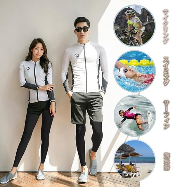 【適用場合&水陸両用】海辺のみならず、軽量なのに伸縮性抜群の生地でとても動きやすく、吸汗・速乾素材なので運動に最適です!夏場のウォータースポーツや野外活動の際、海、ジム、プールやビーチ、、温泉と幅広いジャンルで使える便利なスポーツ・アイテムです。通勤、通学、ランニング、ヨガなど、スポーツウェアとしてもご利用いただけます。水に濡れても快適に活動できる生地を使用。前開き対応のラッシュガードは着脱も簡単です、着替えに便利。