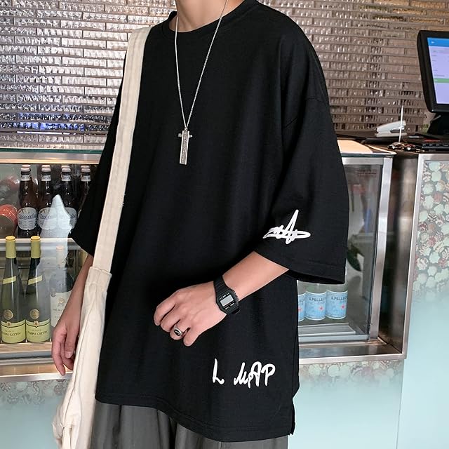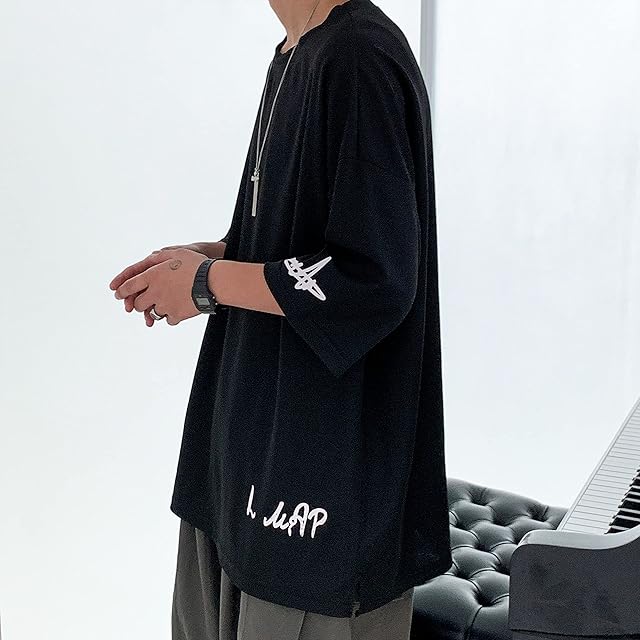 [Culeevp] 夏服 メンズ tシャツ メンズ 半袖 七分袖 大きいサイズ 無地 速乾性 柔らかい 服 メンズ 黑4XL