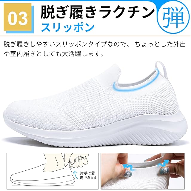 [MERPHINE] 紐なし履き スニーカー 大人 メンズ ウォーキングシューズ 室内 シューズ 軽量 通勤 立ち仕事 メッシュ 歩きやすい 靴 オールホワイト 25.5 cm