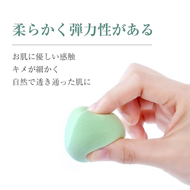 ラテックスフリーを採用し、柔らかく弾力のある手触りに仕上げました。それに、本品は乾燥した状態、湿った状態の2つの状態で、ご使用になることができます。メイクブラシとの併用、メイクブラシを使用しリキッドファンデーションなどを塗ったのち、スポンジパフの平らな面で、軽くたたく事により、余分なメイク、皮脂を落としよりナチュラルに仕上げてくれます
