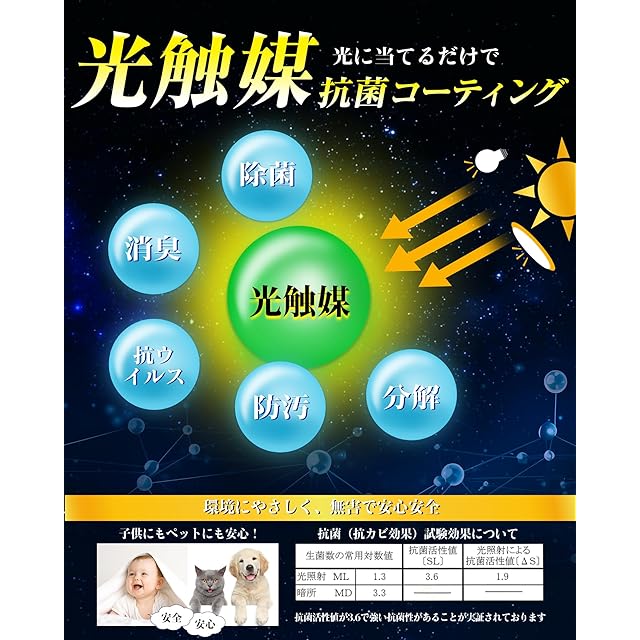 【【除菌】 【抗菌】 【消臭】を光触媒加工で解決】光触媒とは、太陽や蛍光灯などの光が当たることで、含有酸化チタンからモノを引き付けようとするイオン吸着力と同時に強力な酸化力が発生します。それにより、有害物質を無害化、分解し、増殖を抑えることができる環境浄化技術です。湿気や汗から出るニオイや細菌の心配もありません。いつでもひんやり敷きパッドを清潔にお使いいただけます!