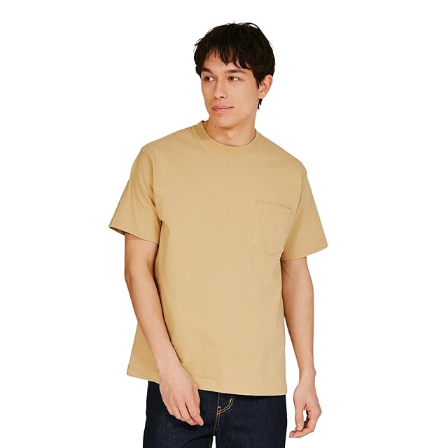 [ヘインズ] Tシャツ 半袖 丸首 綿100% 丸胴仕様 タグレス仕様 ビーフィポケットTシャツ ビーフィー H5190 メンズ サンドベージュ S