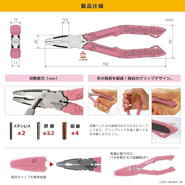 切断能力(Φmm):2.0(ステンレス線)/3.2(軟鉄線)/4.0(銅線(単線))