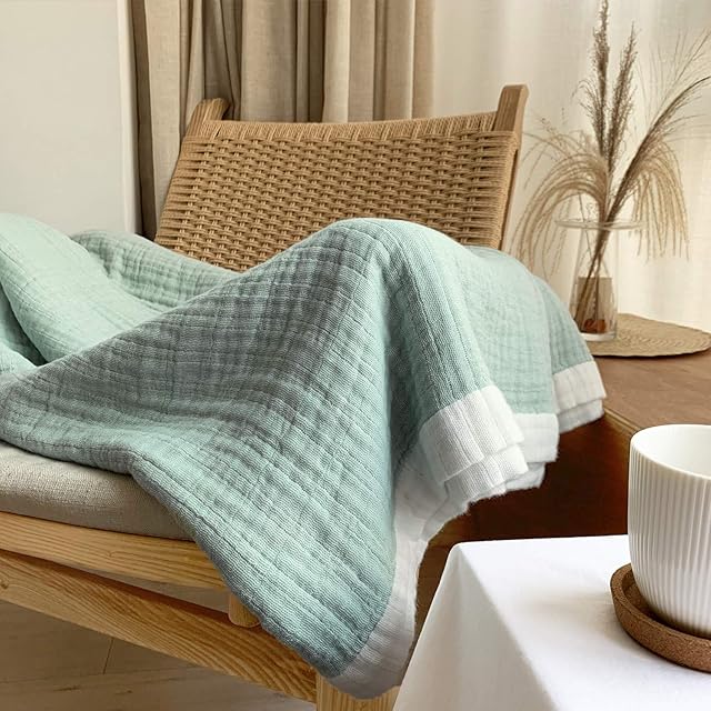 Vanxing ガーゼケット シングル 4重織り 天然綿100% 吸湿 通気 夏快眠 肌に優しい 年中快適 丸洗いOK 軽量 リバーシブル 150x200cm (無地,グリーン)