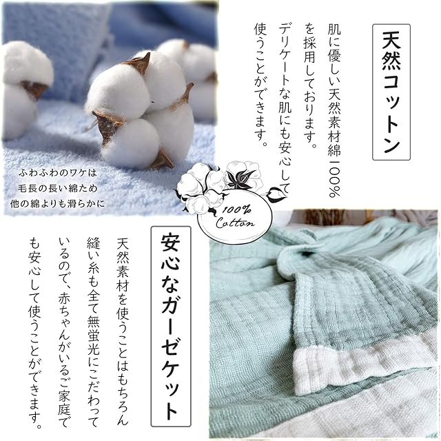 【天然コットン100%】Vanxingのガーゼケットは、綿花にとことんこだわっています。肌に優しい天然素材綿100%を採用しております。デリケートな肌にも安心して使うことができます。静電気も大変起きづらいのも人気です。
