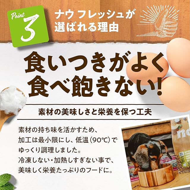 【新鮮という品質をお届け】ナウフレッシュは、家族の大切な一員である愛犬のために、トコトン新鮮にこだわったナチュラル×ミールフリーのプレミアムフードです。