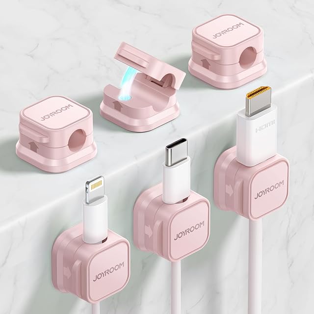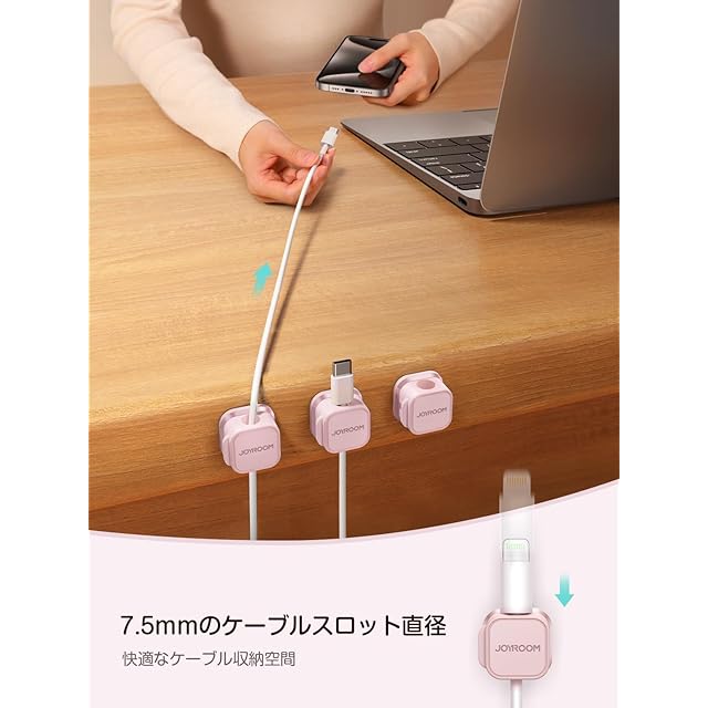 「6個セット·業界初!マグネット式」ケーブルホルダー JOYROOM ケーブルクリップ 配線止め 配線整理 ケーブルスムーズ調整可能 コードホルダー デスク周り コードクリップ 貼り付け 強力粘着 USB配線収納 卓上 デスク 机 壁 車 ナイトテーブル すっきり USB-C ケーブル固定 type-c マウスライン キーボードライン 電源コード ヘッドフォンケーブル などに対応