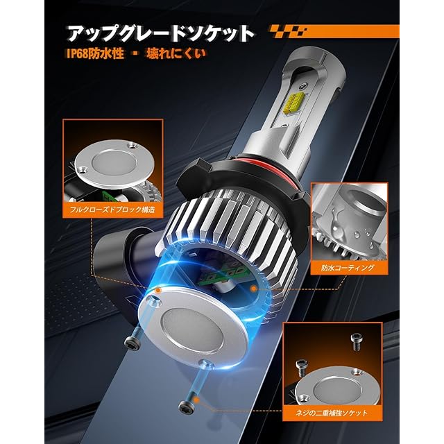 【アップグレードソケットIP68防水性】 防水コーティングとフルクローズドブロックにより、密閉された構造を実現しています。これにより、1.5メートルの水中で30分間連続使用しても損傷しない耐水性を備えています。雨の中を運転する場合や、泥濘の道を走る場合でも安心して使用することができます。 ランプのベースは、二重のねじで固定されており、プラグの安定性を高めるために、耐久性のある素材を使用し、ねじで構造の強度を高めています。フォグランプを交換する時や、過酷な道路状況下で走行する場合でも、プラグのゆるみ、断裂、または破損が起こりません。