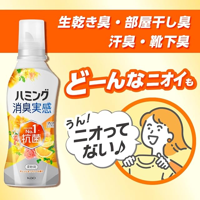 ハミング 【ケース販売】消臭実感 柔軟剤 つめこみ洗いも、部屋干しも、無敵消臭! 内No.1抗菌 オレンジ&フラワーの香り つめかえ用 2,600ml×4個 大容量