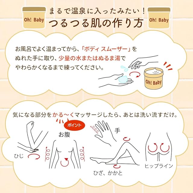 やさしく撫でるだけで全身つるつる・すべすべ!まるで温泉に入ったようななめらかな肌触りを実感できます。