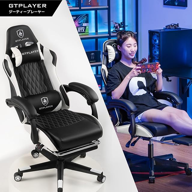 GTRacing (ジーティーレーシング) ゲーミングチェア 白 デスク pcチェア 椅子 テレワーク 145°リクライニング オットマン付き ゲームチェア ハイバック ランバーサポート ポケットコイルが内蔵 PUレザー GTPlayerシリーズGTP900-WHITE