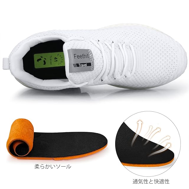 [Feethit] スニーカー メンズ レディース ランニングシューズ 通気 軽量 滑り止 スポーツシューズ スリッポン ジョギング ウォーキング 運動靴 お洒落 旅行 通学 通勤 日常着用 ホワイト 24.5cm