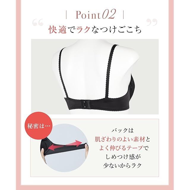 【ソフトなつけごこち】カップ肌側はやわらかな綿混素材【バックもなめらか】バックは肌ざわりのよい素材を使用し、なめらかなつけごこち