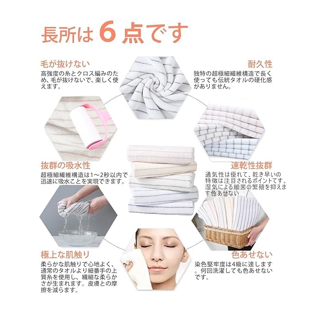 【抜群の吸水性】毛髪の1/100の超極細繊維(マイクロファイバー)の束が毛細血管現象で水分をすばやく吸収、拡散します。吸水した後も方面席が広い極細繊維なので水分蒸発時間が早く、いつでもサラッとした使い心地です。