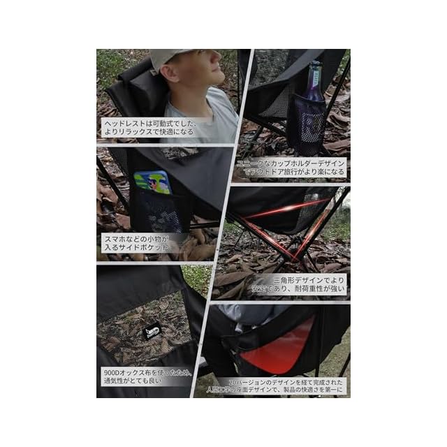 ✅【優れる耐久性と通気性】 アウトドア椅子は800Dポリエステルを採用した座面とメッシュの設計で、あつい季節も蒸し暑くなく、抜群の通気性と快適な座り心地を確保できます。座面の裏も防水加工し、雨でもタオルでちょっと拭くだけ座れます。さらに、座面を深くするし、ハンモックのように体にフィットし、ゆったりと包み込まれる座り心地を実現したレジャーチェアです。