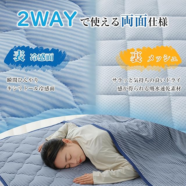 【冷感敷きパッド・商品仕様】「サイズ」シングル:100×200cm セミダブル:120×200cm ダブル:140×200cm クイーン:160×200cm ワイドキング:200×200cm ※キルティング製(許容範囲+5%,-3%)「側生地」表地:ポリエステル48%、ナイロン52% 裏地:メッシュ「詰め物」ポリエステル100%(TEIJIN中綿使用) 爽やかなストライプ柄が夏には絶対に欠かせないアイテム!当店の冷感ケットと組み合わせると、更に冷却効果を実感できます。「品質」当店製品は国際基準ISO9001認定工場で生産し、安心な品質ができます。万全の梱包でお届けをしますが、万が一商品に不具合があった場合、弊社にご連絡いただければ迅速に対応いたしますので、ご安心してお買い求めください。製造国:中国 商品企画:日本