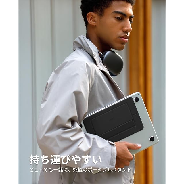 【驚きの軽さ· ミニマリズムへのこだわり】重さわずか65g,サイズは約224*135*2.5mm。AirFlow Standは薄さ・軽さの限界に挑み、レギュラーサイズを20%削減し、25%以上の軽量化を実現した製品です。 さらに、収納時はスタンドをしっかり固定できるように、スナップシール2枚付属しており、まさに見えない収納を実現しています。