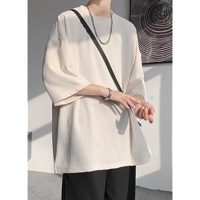tシャツ メンズ 夏服 七分袖 おおきい サイズ 涼しい ゆったり かっこいい ビッグシルエット なつふく ストリート 人気 シンプル オシャレ 人気 無地 韓国風ファッション カジュアル トップス 柔らかい肌触り 洋服 軽い 柔らかい Apricot-L