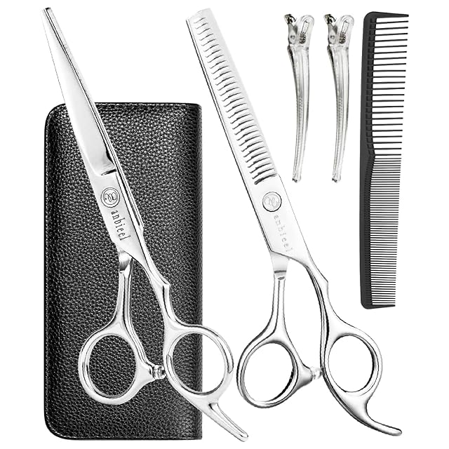 商品名:anbieel (現役プロ美容師が総監修) 散髪 ハサミ すきばさみ セット 低 すき率 髪切りハサミ セルフカット