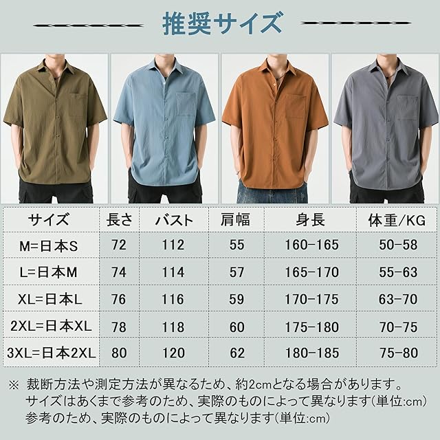 【M】適応身長:160-165cm 体重:50-58kg 【L】適応身長:165-170cm 体重:55-63kg 【XL】適応身長:170-175cm 体重:63-70kg【2XL】適応身長:175-180cm 体重:70-75kg 【3XL】適応身長:180-185cm 体重:75-99kg