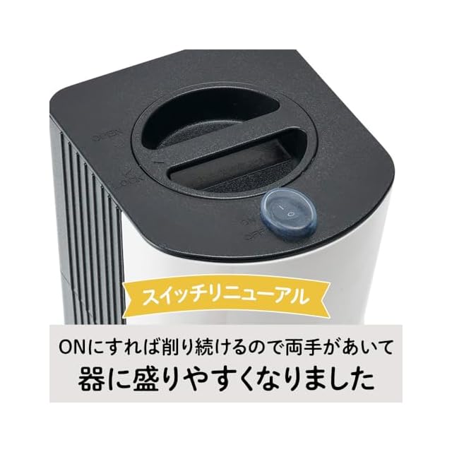 電動ふわふわかき氷器。Newスイッチ搭載。ふわふわ氷を削りながら器への盛り付けが簡単。スイッチひとつで簡単。電源ON/OFF。