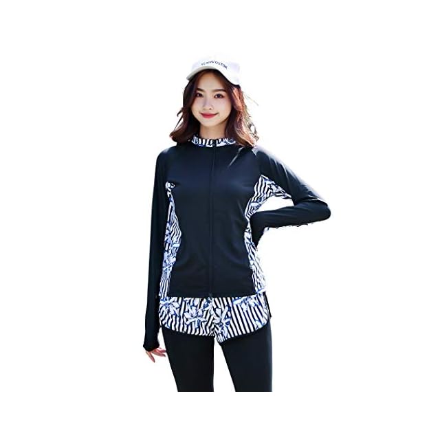 [Teddy] フィットネス 水着 レディース 体型カバー ラッシュガード 5点セット タンクトップ レギンス 長袖ラッシュパーカー UPF50+ UVカット率 98.7% 大きいサイズ hys2128 4L(17号) C:ブラック×ストライプ