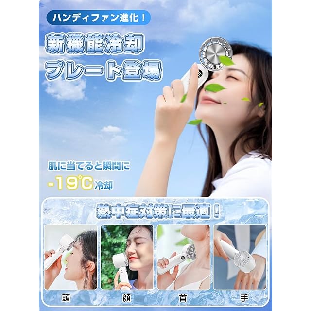 【冷感プレートで冷やす!熱中症対策に最適!】蒸し暑い真夏を快適に過ごすには欠かせないアイテムと言えば携帯扇風機ですね!さらにこの携帯扇風機に冷感プレートが搭載されて、より効果的に体を冷やすことができます!炎天下で扇風機のプレートを火照った肌に当てて、心地よく氷のような冷たさが感じられます。熱中症対策には最適です!電源ボタンを長押しすれば冷感プレートがONになり、冷感不要の場合はまた電源ボタンを長押しすれば冷感プレートがOFFになります。