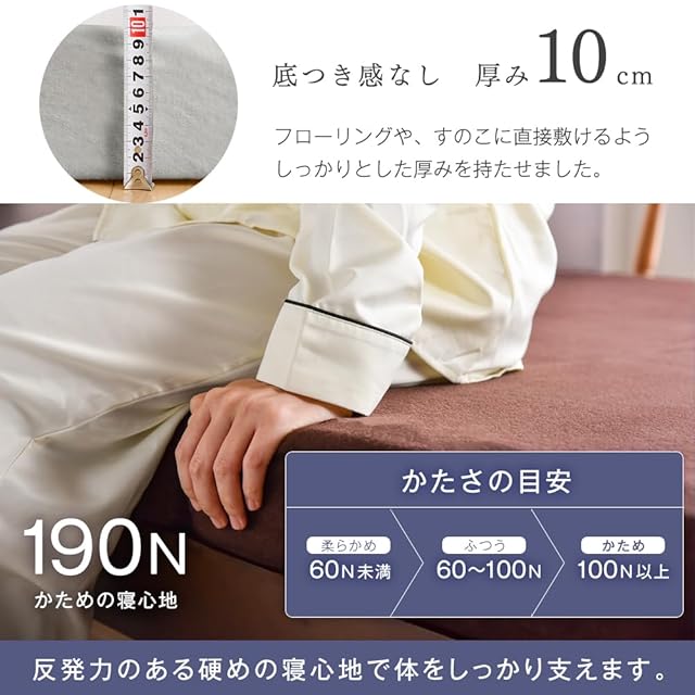 【素材】中材:高反発ウレタンフォーム(反発弾性:40%±3%) 密度:25D<25kg/m3>190N 側生地:シンカーパイル
