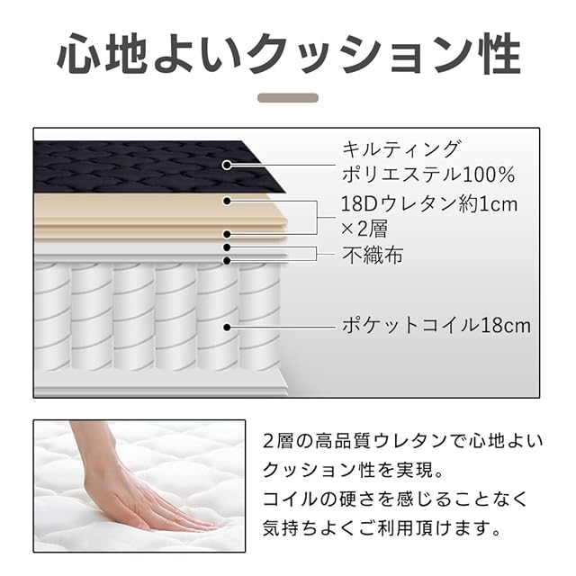 アイリスプラザ マットレス ポケットコイル 極厚20cm コイル528個 通気性 高耐久性 柔らかなウレタンクッション 体圧分散 圧縮梱包 ホワイト シングル PKMTN-SWT