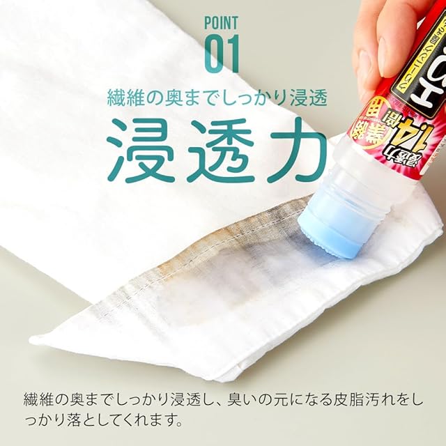 【汗に含まれる「鉄分」と「皮脂汚れ」を除去】衣類の黄ばみ汚れの原因である、汗に含まれる「鉄分」と「皮脂汚れ」をしっかり除去。使用することで黄ばみ予防としても。