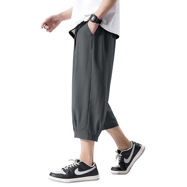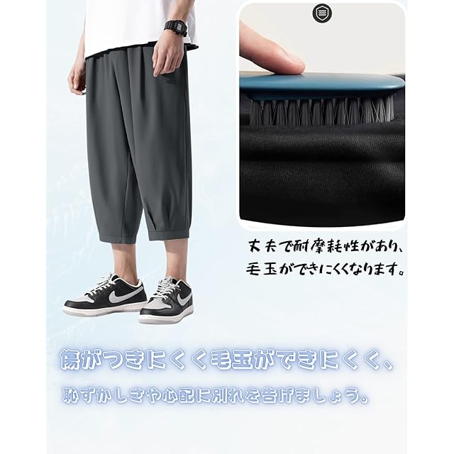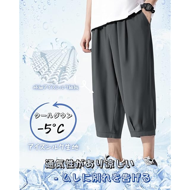 パンツ メンズ 七分丈 夏 接触冷感 クロップドパンツ ハーフパンツ 大きい サイズ ハーレムズボン ワイド ゆったり 涼しい感 アイスシルク ショートパンツ 短パン スポーツ ステテコ dark gray-3XL