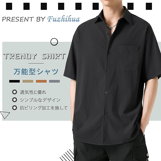 [FUZHIHUA] シャツ メンズ 長袖 半袖 夏 カジュアル ビジネス 薄手 ゆったり 無地 おしゃれ 大きいサイズ ワイシャツ 春夏秋冬服
